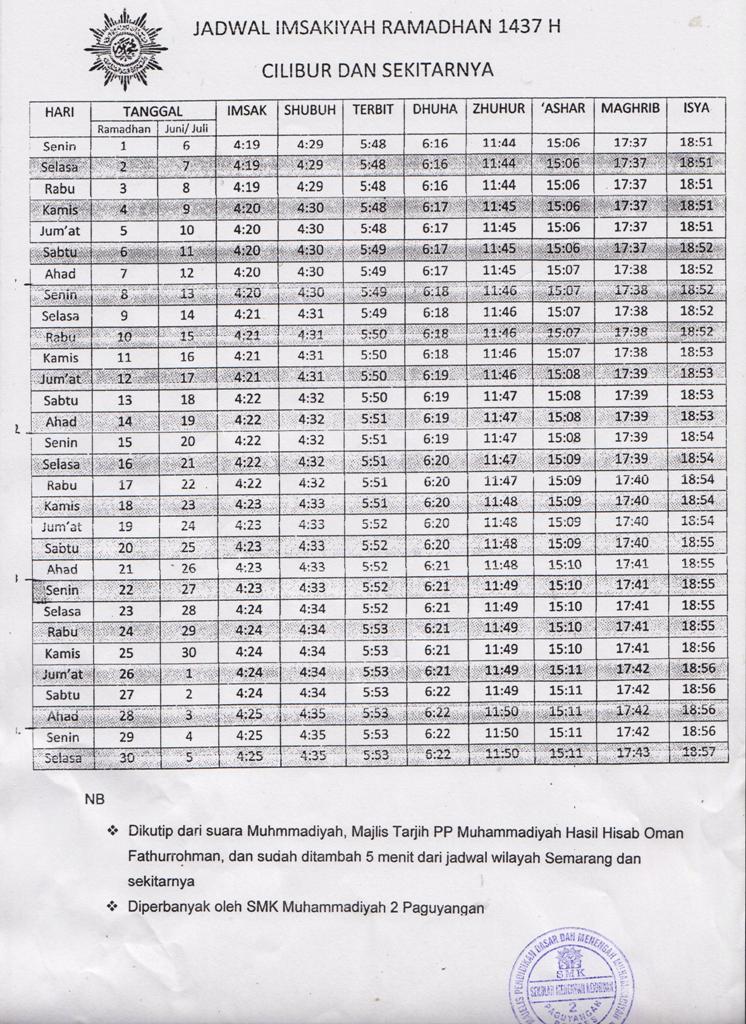 Tanggal : 09/06/2016Jadwal Imsakiyah Ramadhan Tahun 2016/1437H